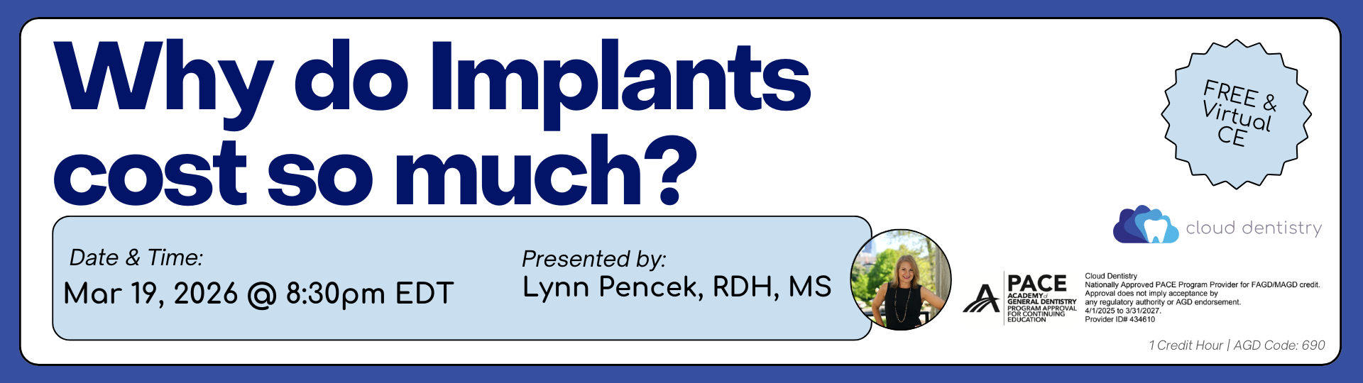 Patients often ask, “Why do implants cost so much?”— As auxiliaries, we can be on the front lines of that conversation. Implant dentistry involves far more than the visible procedure, and patients often don’t realize the breadth of expertise, education, technology, materials, and overhead required to deliver safe, predictable outcomes. This course provides a broad, accessible overview of the true expenses behind implant care—from advanced diagnostics and digital planning to surgical equipment, lab fabrication, materials, and everyday practice overhead. Designed specifically for dental auxiliaries, this session equips the team with the insight and language needed to set reasonable expectations for patients' treatment options.